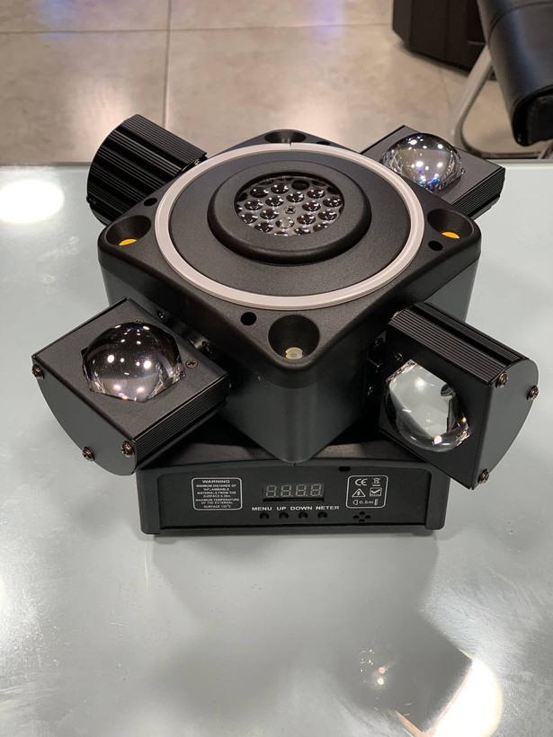 • نورپردازی ۳۶۰ درجه: چرخش بازوها به اطراف باعث پوشش کامل فضا با جلوههای نوری متنوع میشود.
