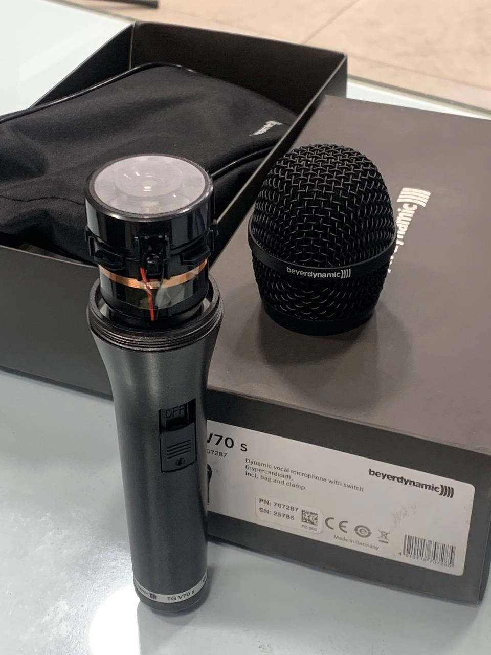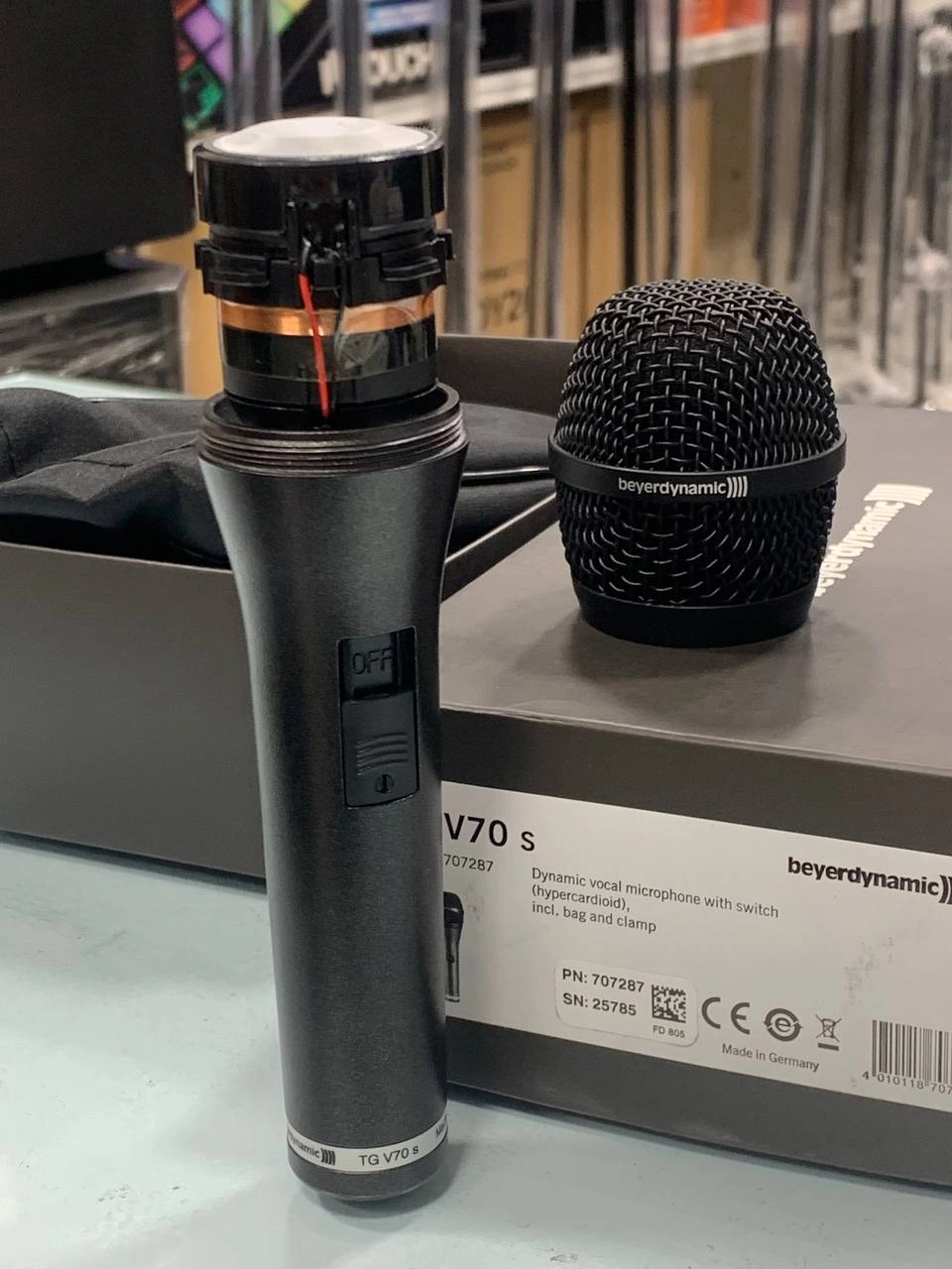 میکروفون حرفه ای بیرداینامیک Beyerdynamic TG V70 S یک محصولی باکیفیت و با طراحی زیبا و بی نقص خود مناسب استفاده برای حرفه ای ها، خوانندگان صحنه و سخنرانان حرفه ای در انواع مراسمات و برنامه های زنده است. این محصول با الگوی قطبی هایپرکاردیوید تمام نویز و صداهای مزاحم اطراف را به خوبی فیلتر میکند. از ویژگی های خوب این میکروفون میتوان به صدایی گرم، قدرتمند و پر حجم آن اشاره کرد. همچنین یک سوییچ یا دکمه جهت روشن و خاموش کردن بر روی بدنه این میکروفون وجود دارد که در مدل TG V70 وجود ندارد.