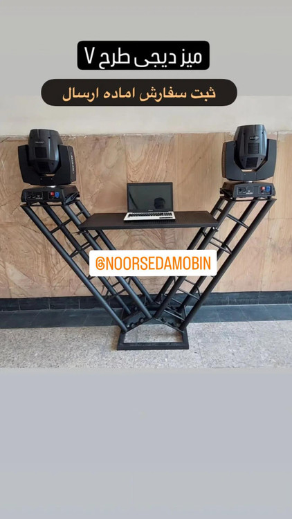 با میز دیجی V شکل، استایل اجرا و نظم تجهیزاتت رو به سطح جدیدی ببر! این میز با طراحی خاص V شکل، نهتنها ظاهر مدرن و جذابی داره، بلکه فضای ایدهآلی برای قرار دادن لپتاپ، کنترلر، پاورمیکسر، و تجهیزات نور و صدا فراهم میکنه.
