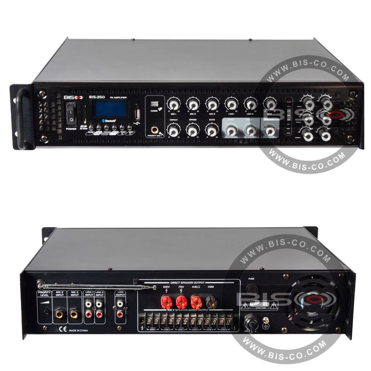 با امکاناتی مانند اکو داخلی، ورودی میکروفن، بلوتوث و USB، آمپلیفایر BIS350 نیازهای صوتی روزمره شما را با کیفیت مناسب و عملکرد پایدار برطرف میکند.